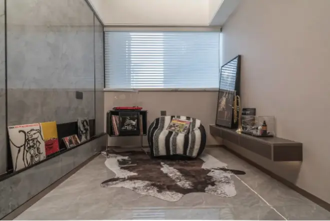 有一个让扬哥惊喜的地方,便是在玄关处增加了一处多功能空间,可以打造成茶室、瑜伽室或是宠物角等等,家的样子随心可变,日子也会有趣起来。