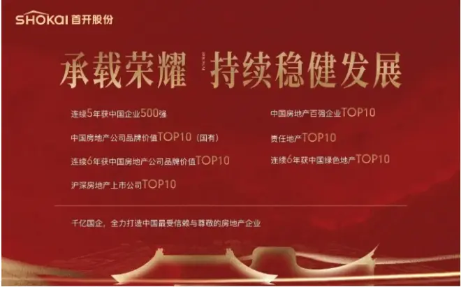 首开股份连续入围财富中国 500 强企业,沪深房地产上市公司TOP10,责任地产TOP10,企业品牌价值 TOP10、连续 6 年获中国房地产公司品牌价值TOP10。连续 5 年获中国企业 500 强、连续 6 年获中国绿色地产 TOP10等殊荣。