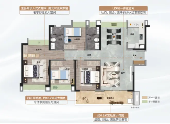 LDKB的空间集聚化布局,分而不离,有效扩大家庭内视线范围以及活动空间,满足同一空间下与家人的交流互动。