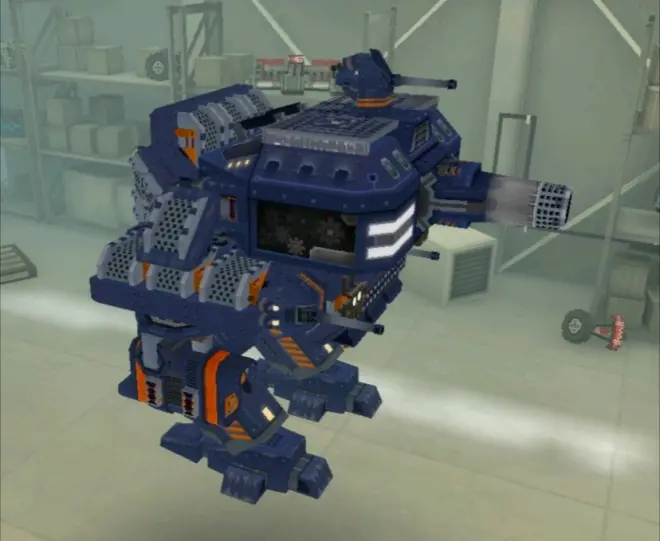 其他部分比较脆弱,特别是腿部,由于没有推进器的原因只要打掉腿这玩意基本上就是个炮台了。