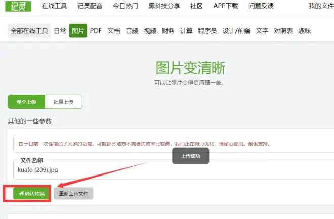 步骤三、上传完后,点击确认转换,系统将立即开始处理照片,并在几秒钟内提供处理后的结果,然后提供下载链接,点击下载即可。