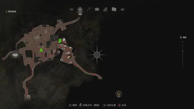 径直走到A点触发炸楼,然后回头进下水道(注意地上夹子),然后从下水道出来,先捡绿草,然后在缓慢移动到B点敌人身后背刺,之后用钥匙开门进去,之后出集会所,地图上标记的资源都捡下,特别是毒蛇,散弹子弹也可能会是手枪子弹,这里也要注意一下,图中只有这样标记了。然后在商人这卖掉之前的资源,升级手枪伤害和购买闪光合成图纸,修下小刀,之后直接走到下个区域。