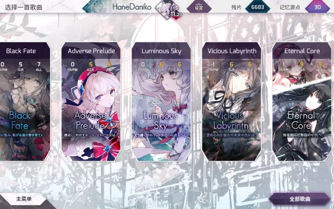 Eternal Core(ES包)与Adverse Prelude(砖包)没有隐藏曲与额外角色,所以不详细说明。 一、Luminous Sky(光包)