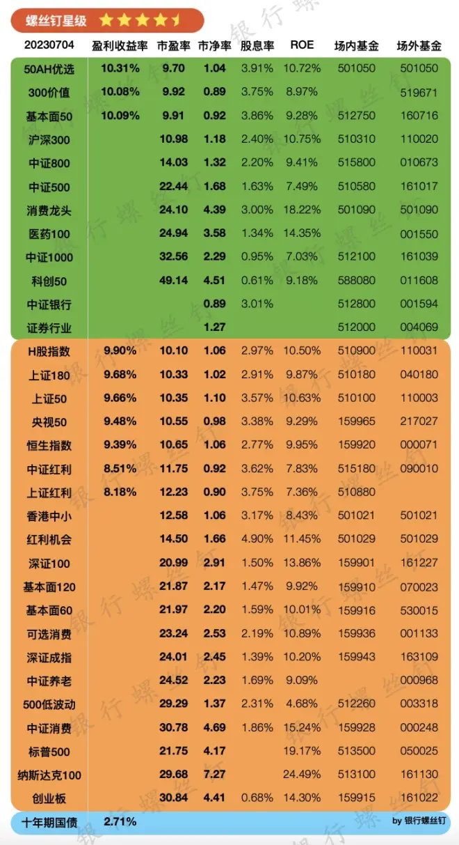 7月4日指数估值数据(还在4.9星级)