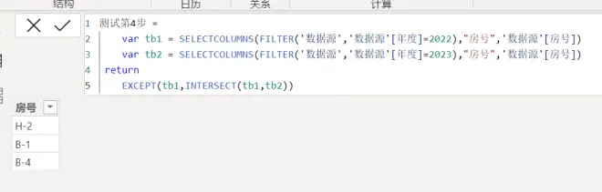 如下图所示,我们对2022年度的表取房号列(仍然是一张表只是只有一列而已)
