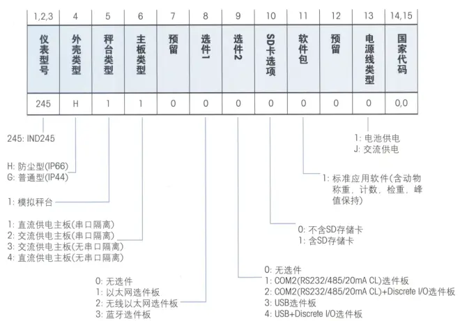梅特勒-托利多 IND245仪表(GDD汽车衡专用)数字称重仪表型号配置说明: